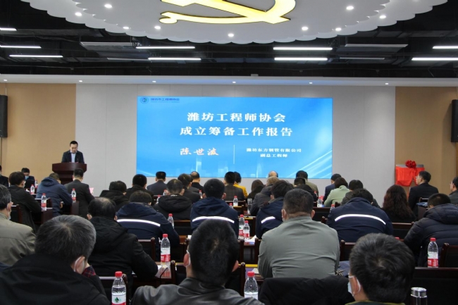 会议第二阶di yi 项:潍坊东方钢管有限公司副总工程师陈世波代表筹备委员会作《潍坊市工程师协会成立筹备工作报告》