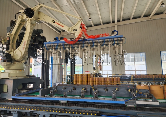 全自动装车机使用现场,啤酒桶推进式装车机定制
