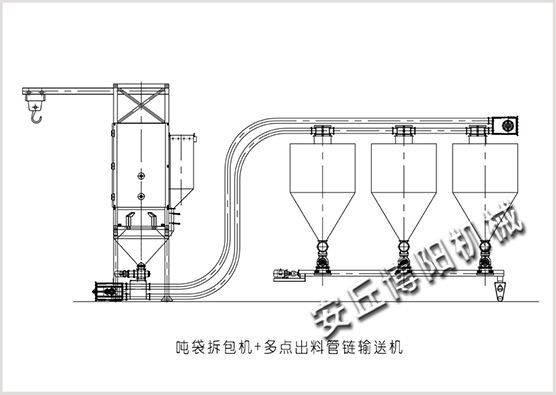 吨袋拆包机+多出料口管链输送机方案